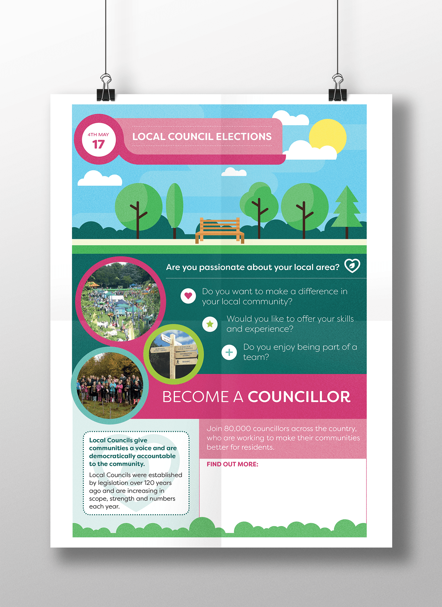 Bold also created an eye catching A4 poster template for Local Councils to advertise for Local Councillors which was shared with local councils with the option to customise the poster for each local area.